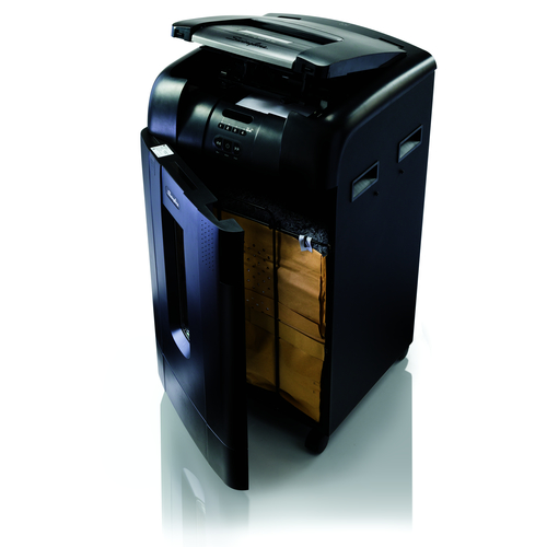 That is the Stack and Shred high security level 5 micro cut hands free shredders by Swingline. If you are interested in spending your time on more productive tasks than shredding, you might want to check these shredders out.