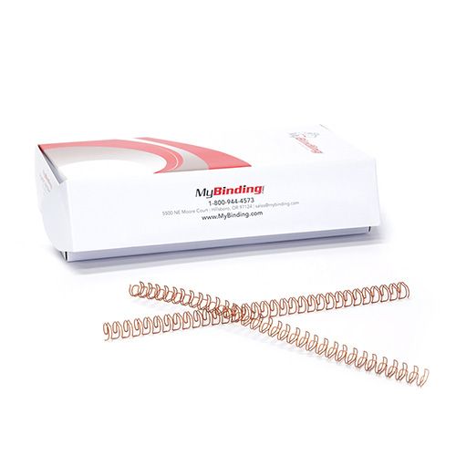These high quality Gold (Bronze) 5/16" 3:1 Pitch Twin Loop Wires are some of the best wire binding spines on the market today. Also called Wire-O, WireBind, and Double Loop Wire, these Gold (Bronze) 5/16" 3:1 pitch elements let pages lie flat with 360 Degrees rotation for convenient note-taking and photocopying as well as provide a permanent bind to your documents--meaning your pages stay secure and protected. Not only that, but these Gold (Bronze) 5/16" 3:1 pitch wire spines look a tad more refined than a plastic comb or spiral coil. Measuring 5/16" in diameter, these Gold (Bronze) twin loop wires can hold approximately 30-50 sheets. These Gold (Bronze) 5/16" 3:1 pitch twin loop wires come open in a "C" shape, allowing you to insert the spines into your punched pages and then simply use your wire binding machine or wire closer to finish your books. Product number W516GD.