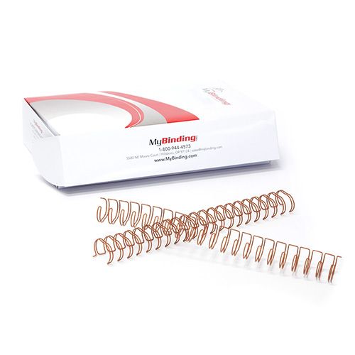 These high quality Gold (Bronze) 7/16" 3:1 Pitch Twin Loop Wires are some of the best wire binding spines on the market today. Also called Wire-O, WireBind, and Double Loop Wire, these Gold (Bronze) 7/16" 3:1 pitch elements let pages lie flat with 360 Degrees rotation for convenient note-taking and photocopying as well as provide a permanent bind to your documents--meaning your pages stay secure and protected. Not only that, but these Gold (Bronze) 7/16" 3:1 pitch wire spines look a tad more refined than a plastic comb or spiral coil. Measuring 7/16" in diameter, these Gold (Bronze) twin loop wires can hold approximately 60-80 sheets. These Gold (Bronze) 7/16" 3:1 pitch twin loop wires come open in a "C" shape, allowing you to insert the spines into your punched pages and then simply use your wire binding machine or wire closer to finish your books. Product number W716GD.
