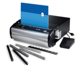 Plastic Combs: The most common method for binding legal sized documents is with plastic combs. Combs are available as a standard item in black and can easily be ordered with a little bit of lead time in other colors. There are a also a few different legal sized comb binding punches available on the market including the Tamerica Durabind 242 , the Akiles CombMac and the Akiles line of Combo Machines that bind both wire and combs. However, if you don’t have a plastic comb binding machine that is long enough to punch your legal sized documents you may still be able to bind your documents. You will simply have to punch the documents in two steps and possibly have to insert the five extra rings by hand.
